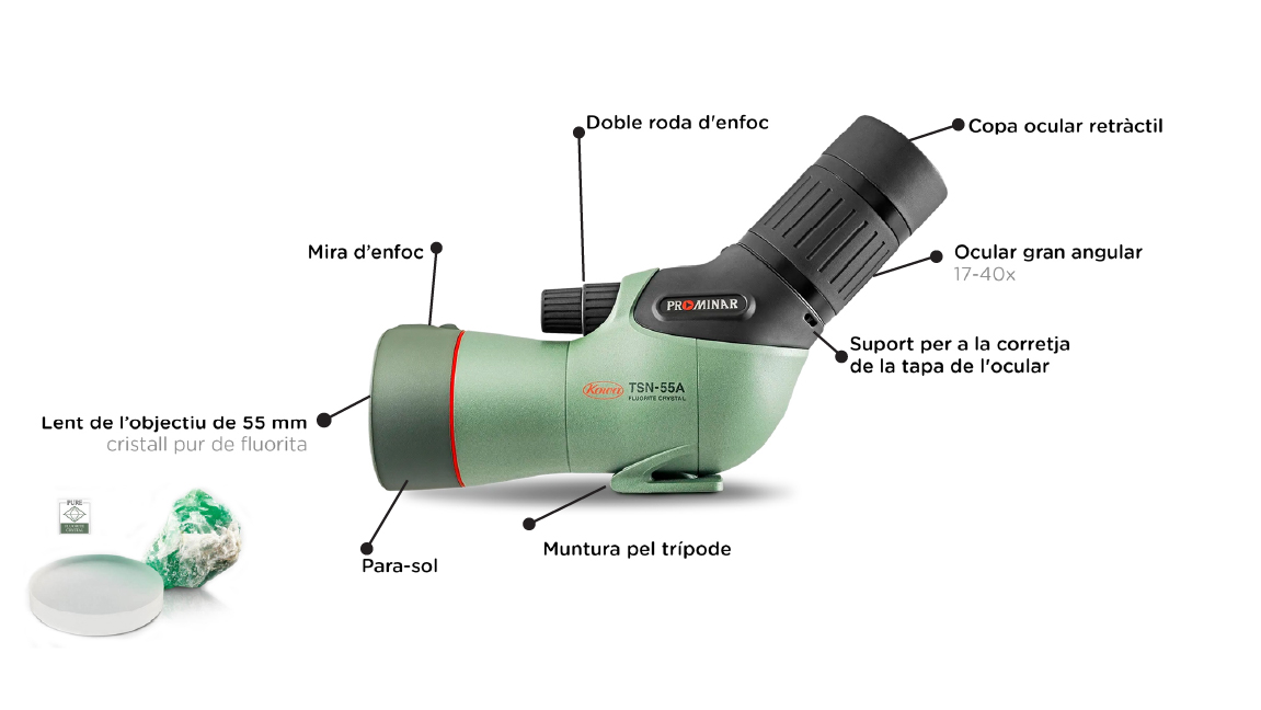 El renovat TSN-55 és l’últim afegitó a la prestigiosa família PROMINAR de Kowa de telescopis amb cristalls purs de fluorita, un model ultra compacte que concentra totes les millores incorporades dels models renovats fins al moment.