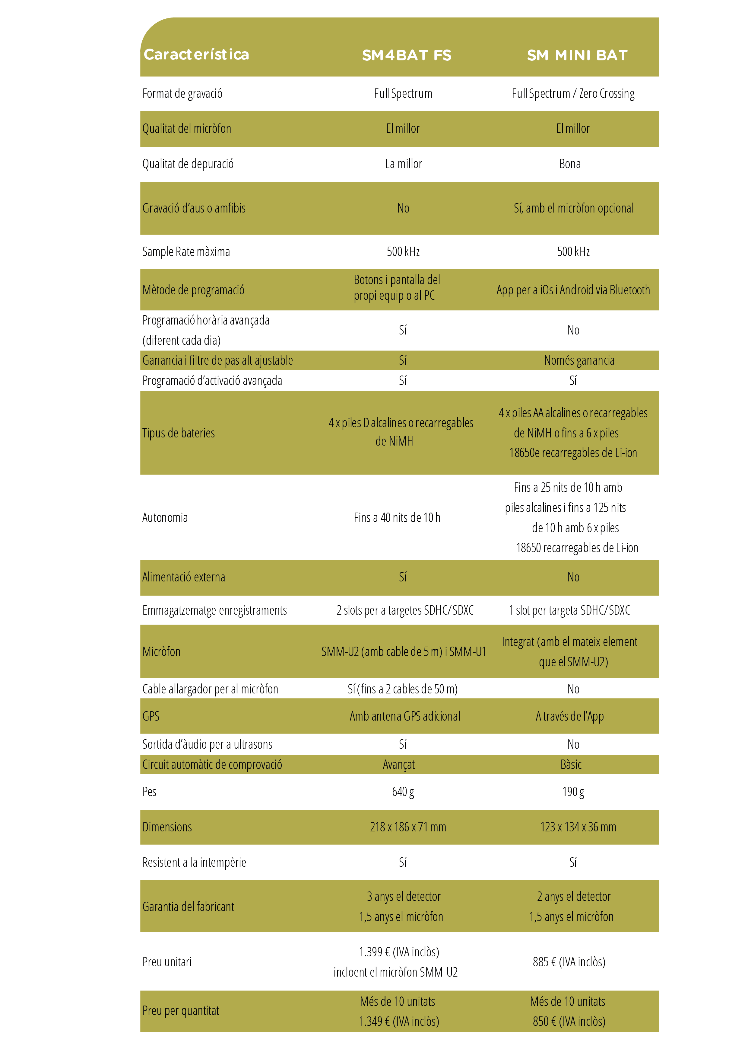 Taula comparativa entre la SM Mini Bat i la SM4BAT FS