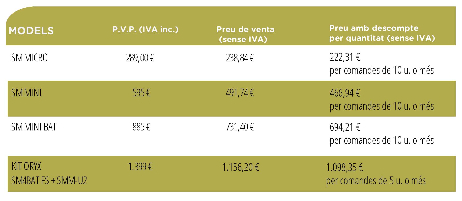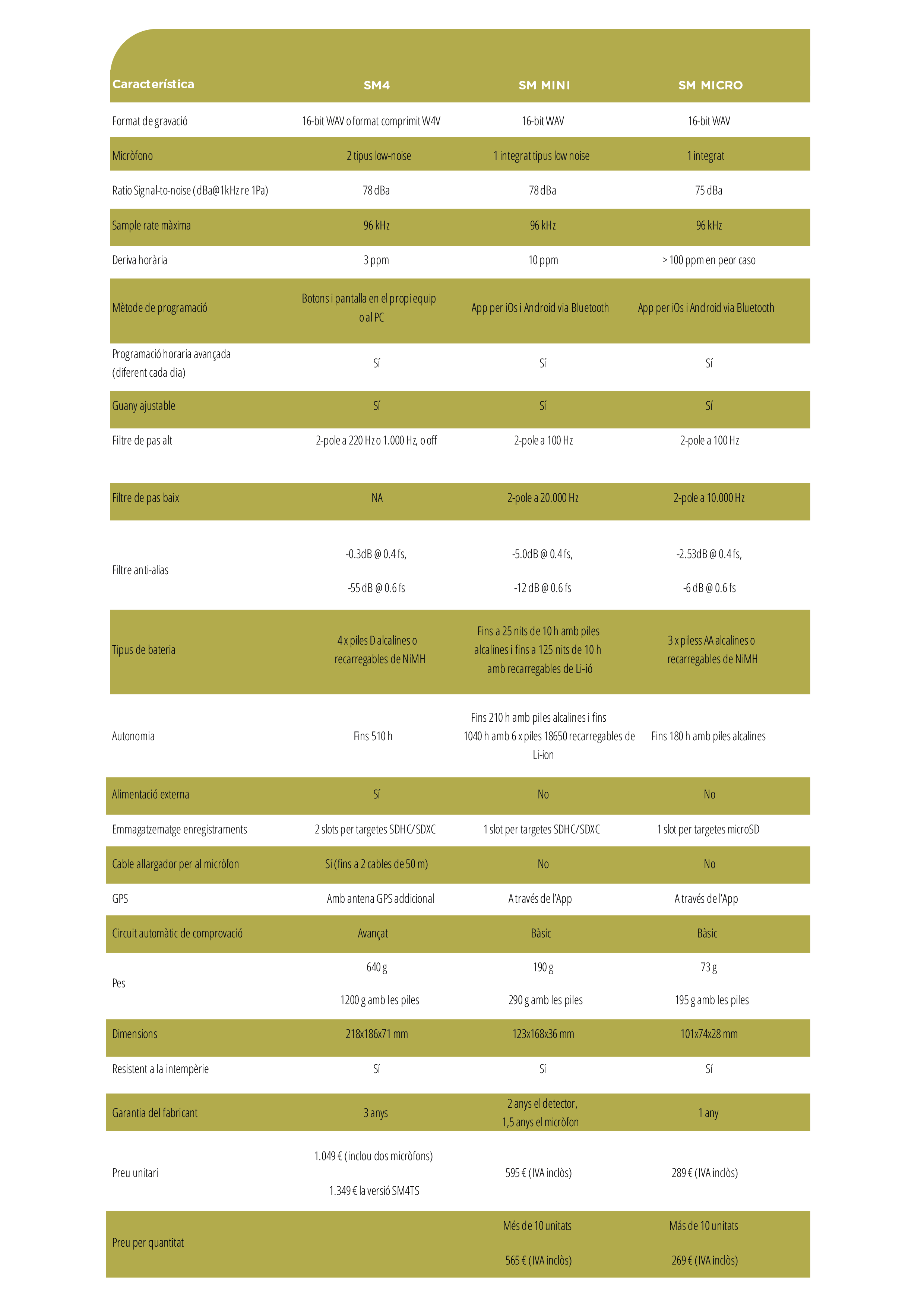Pot consultar els preus de la resta d’equips i complements acústics de Wildlife Acoustics fent clic aquí.