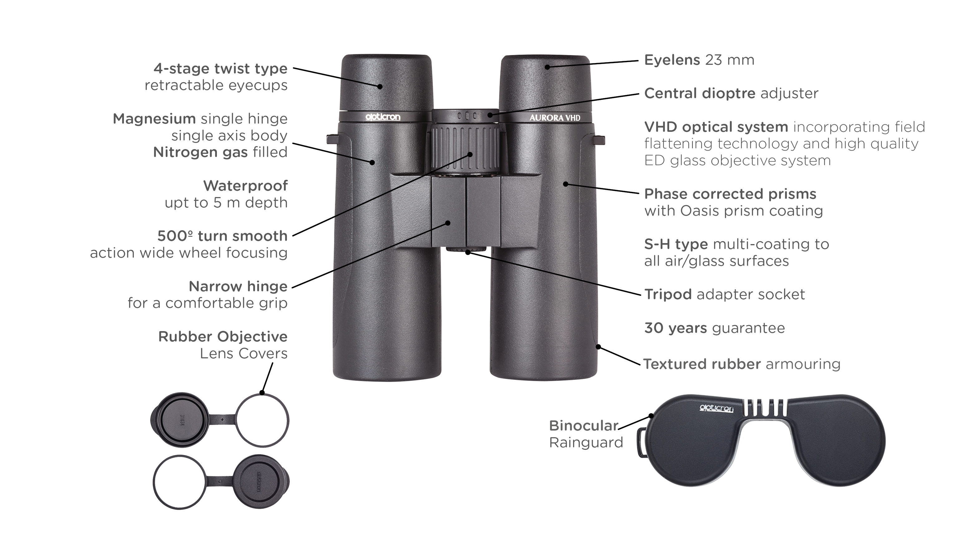 The new AURORA BGA VHD+, of Japanese manufacture, are presented with a completely renewed design and a new optical system to offer a binocular with high-level optical performance with a large field of view and a reduced minimum focusing distance, in a very compact and ergonomic format.