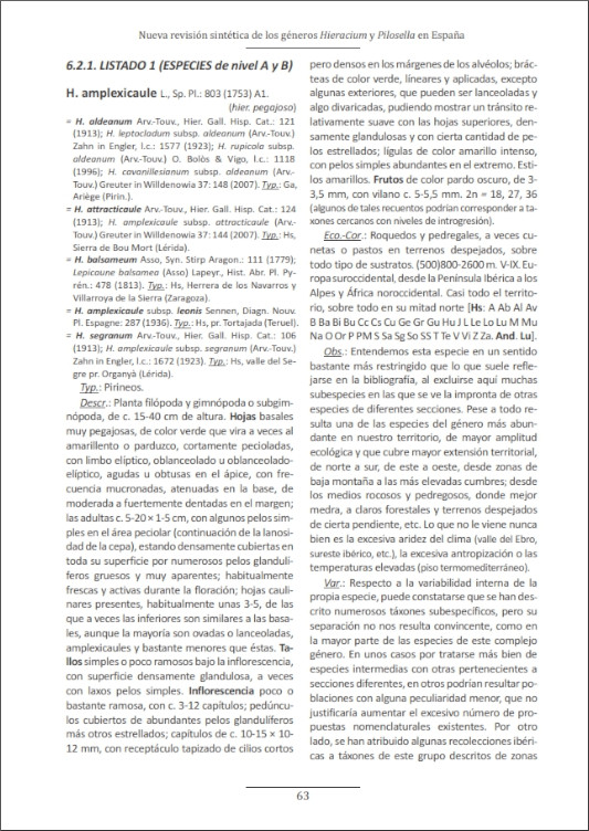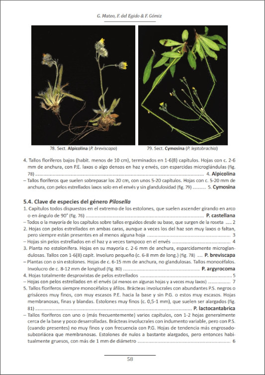 Segunda monografía para España de dos complejos géneros la familia de las compuestas (Asteraceae), Hieracium y Pilosella, en este caso sintética. Presenta claves dicotómicas ilustradas con fotos de pliegos en fresco, así como descripciones detalladas, ecología, corología y observaciones de tipo taxonómico y nomenclatural.