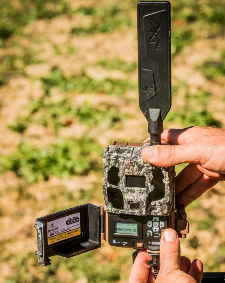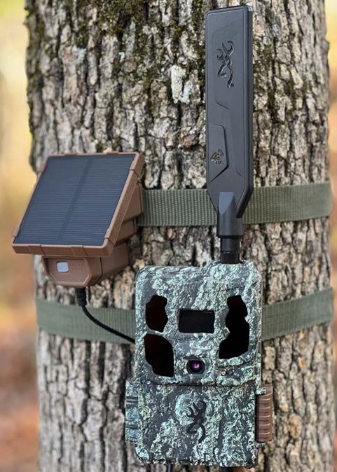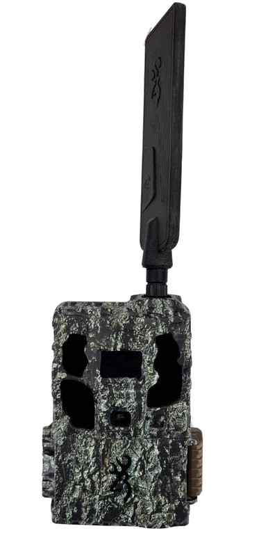 Nuevo modelo internacional de Browning con capacidad de enviar imágenes vía 4G. Se trata de una cámara rápida y con gran calidad de imagen tanto diurna como nocturna. Puede hacer fotos y vídeos en calidad Full HD con sonido. La cámara va montada en una caja estanca de camuflaje que se coloca en el tronco de un árbol. Gracias a un sensor PIR de infrarrojos de alta sensibilidad ajustable según las condiciones detecta animales (mamíferos y aves de cierto tamaño) en movimiento a su alrededor, pero no detecta el movimiento de vegetales o de lluvia. Mediante una trajeta SIM preactivada incluida podemos recibir las fotografías y vídeos que la cámara envía a la aplicación gratuita de Browning. También permite acceder al menú de configuración de forma remota y pedir que nos envíe una foto al instante. Además cuenta con un panel solar y batería capaz de acumular energía incluso sin sol directo, lo que supone una disponibilidad prácticamente ilimitada de batería, ahorro de tiempo y una mejora de su eficacia al reducir al mínimo las molestias y los rastros de nuestra presencia en el lugar escogido para hacer trampeo fotográfico. Flash de luz infrarroja invisible de LEDs negros con potencia ajustable. Los LEDs negros disminuyen la detectabilidad de la cámara al mínimo, especialmente adecuados para tareas de vigilancia o uso en zonas con presencia de personas. Permite hacer ráfagas de hasta 8 fotos y la duración del vídeo con audio es programable de 5 segundos hasta 2 minutos (diurnos).