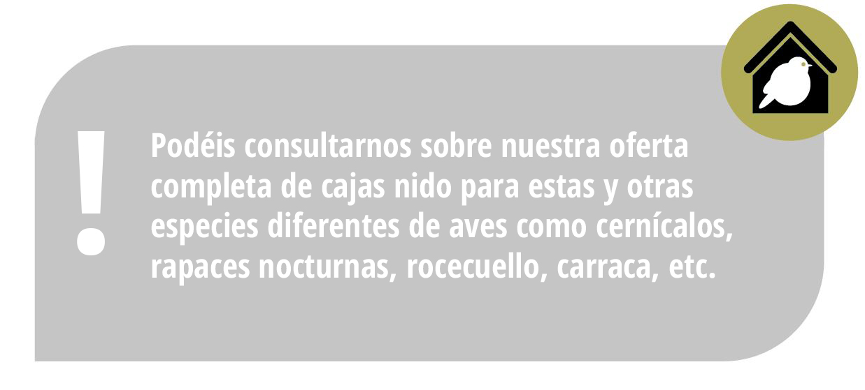 Por último os presentamos otras cajas nido para especies también comunes que completan la variada oferta de la que disponemos.