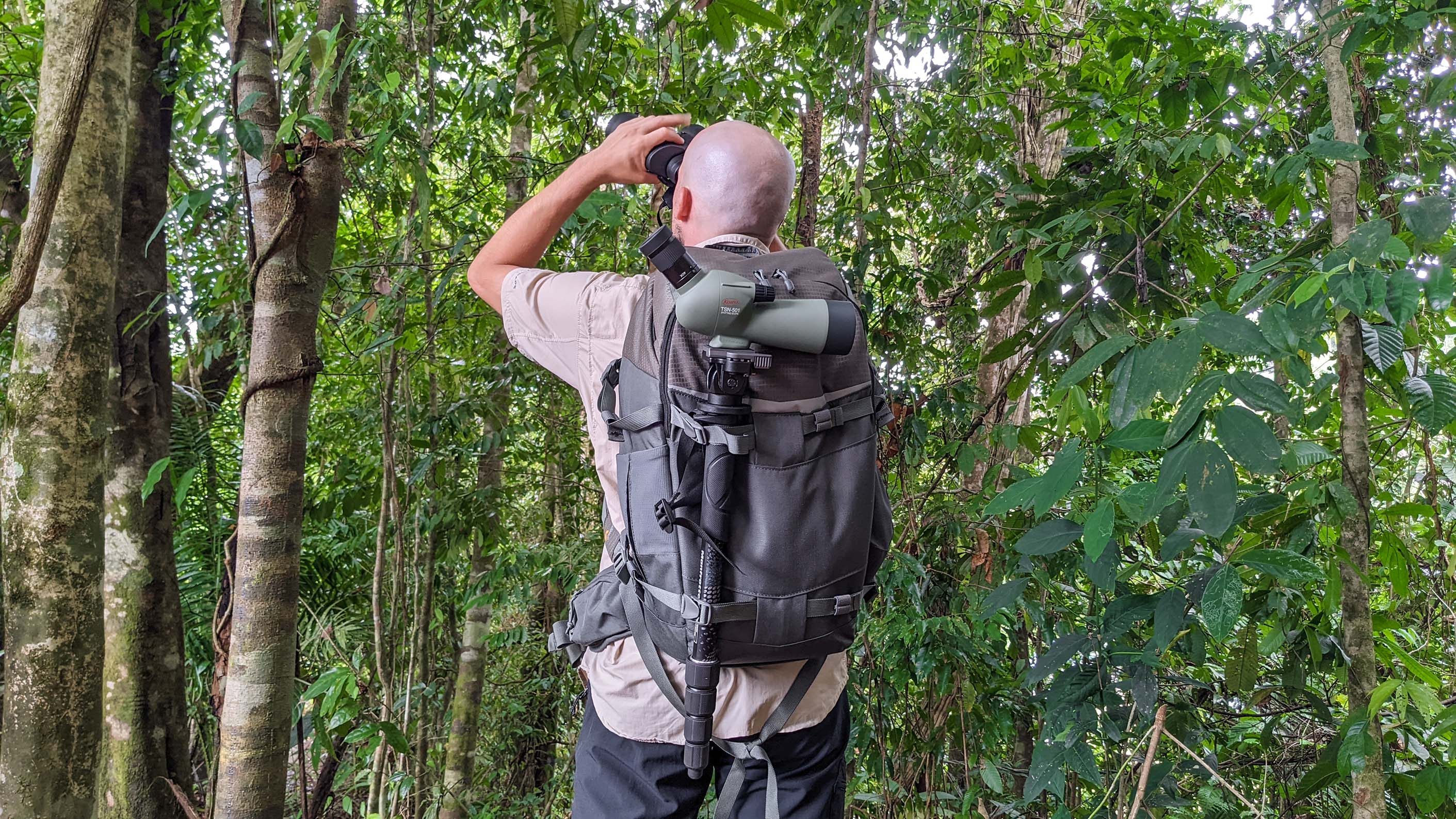 El plan del viaje era más de caminatas que no de largos ratos parados observando el entorno, así que necesitaba una solución que pesara poco, fuera fácil de transportar y me sirviera para identificar rápidamente aquellas especies donde no podía llegar con mis prismáticos.