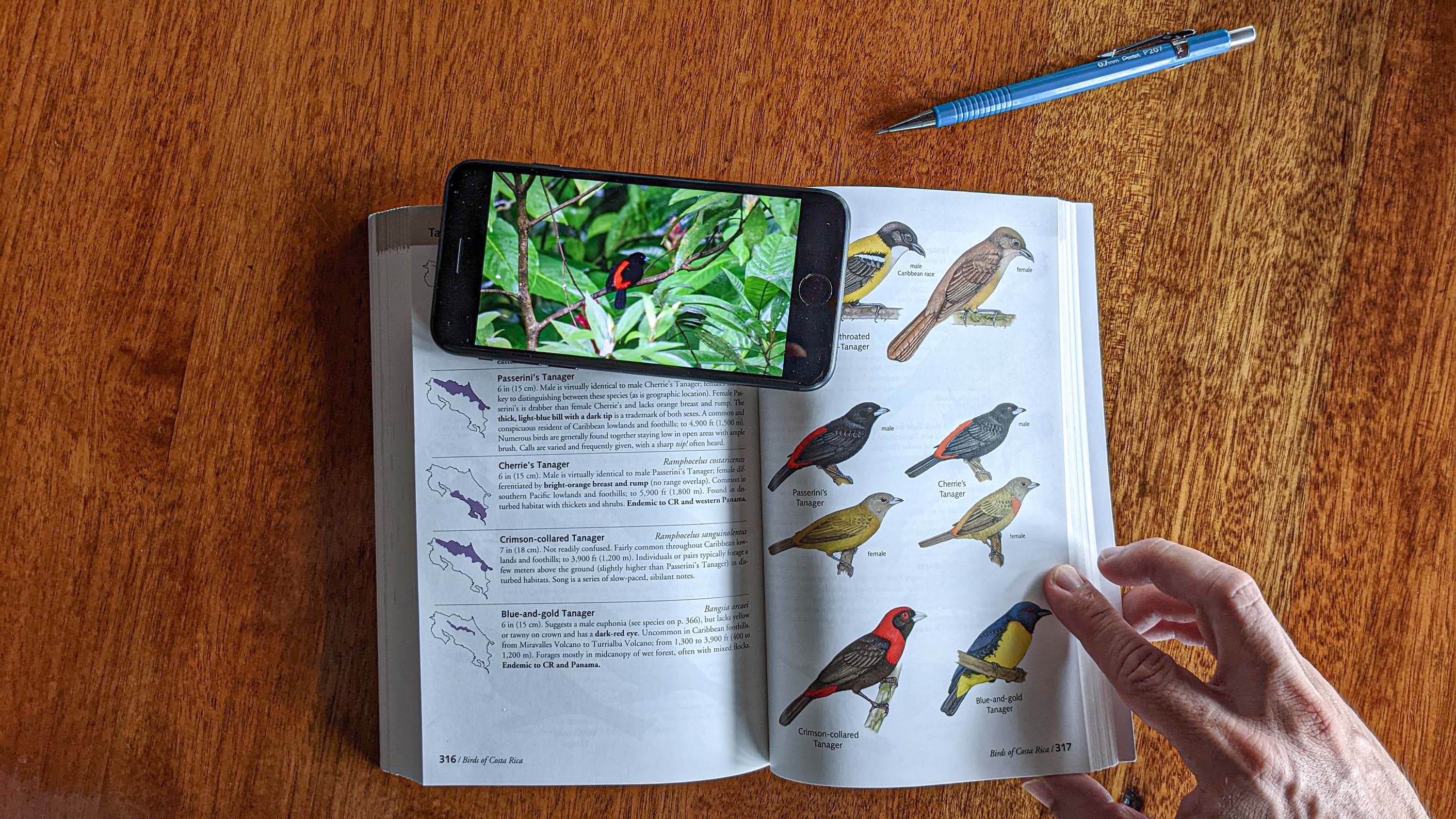 En primer lugar, al ser mi primer destino neotropical, necesitaba una buena guía de aves. Como hay muchas familias nuevas y especies que aquí no tenemos (¡y que además son muy diferentes!), la guía Helm BIRDS OF COSTA RICA me ha sido de gran ayuda. Al inicio, consta de una introducción para conocer las partes de las aves, láminas de rapaces en vuelo y la explicación de la topografía y de los diferentes biomas del país.