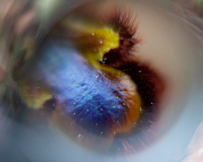 Observando orquídeas la pasada primavera en Siurana, a la derecha detalle visto con lupa de una Ophrys speculum