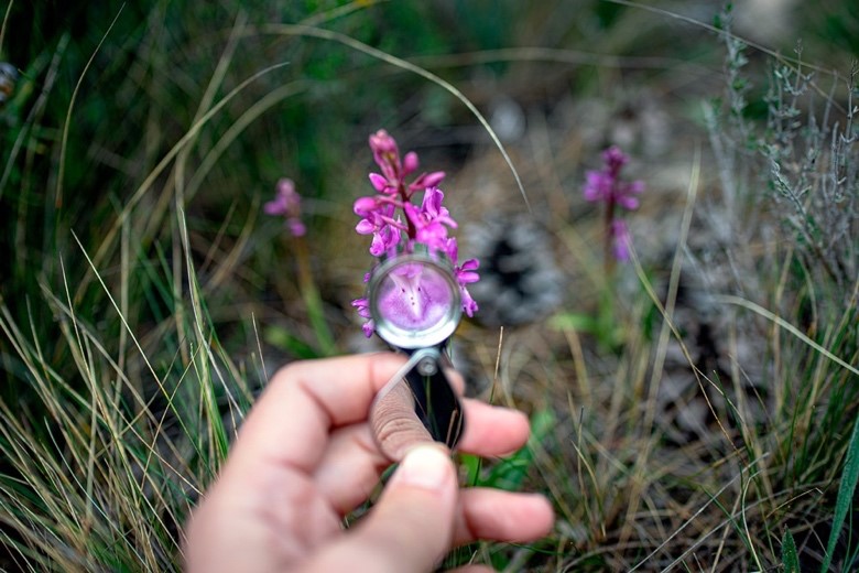 ¡Pero no todo es trabajar delante del ordenador! Salgo a menudo al campo y siempre llevo dos productos de Oryx indispensables: el primero es una lupa de campo plegable, ya que me fascina observar los detalles de flores, líquenes... inspiradoras formas, colores y texturas.