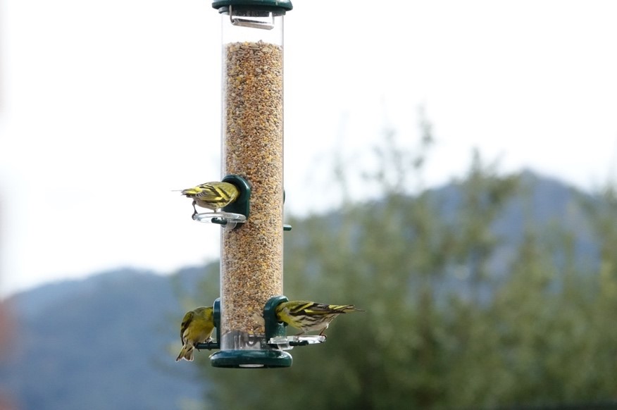 Vivo en un pueblo en el Priorat (Tarragona) y el nuevo comedero metálico PSF-O para pasteles y bolas de sebo ha sido un éxito. Cada mañana vienen lúganos. Si a ellos no les gusta compartir el comedero... ¡Ya es otra cosa! Ningún carbonero ni gorrión puede estar tranquilamente mucho rato en el comedero. Pero el petirrojo, pinzones comunes, tórtolas y algún colirrojo tizón disfrutan de las migajas que caen, todo bajo la mirada de los lúganos machos. El comedero es de metal y caben 6 bolas de sebo o dos pasteles de sebo de Garden Birds.