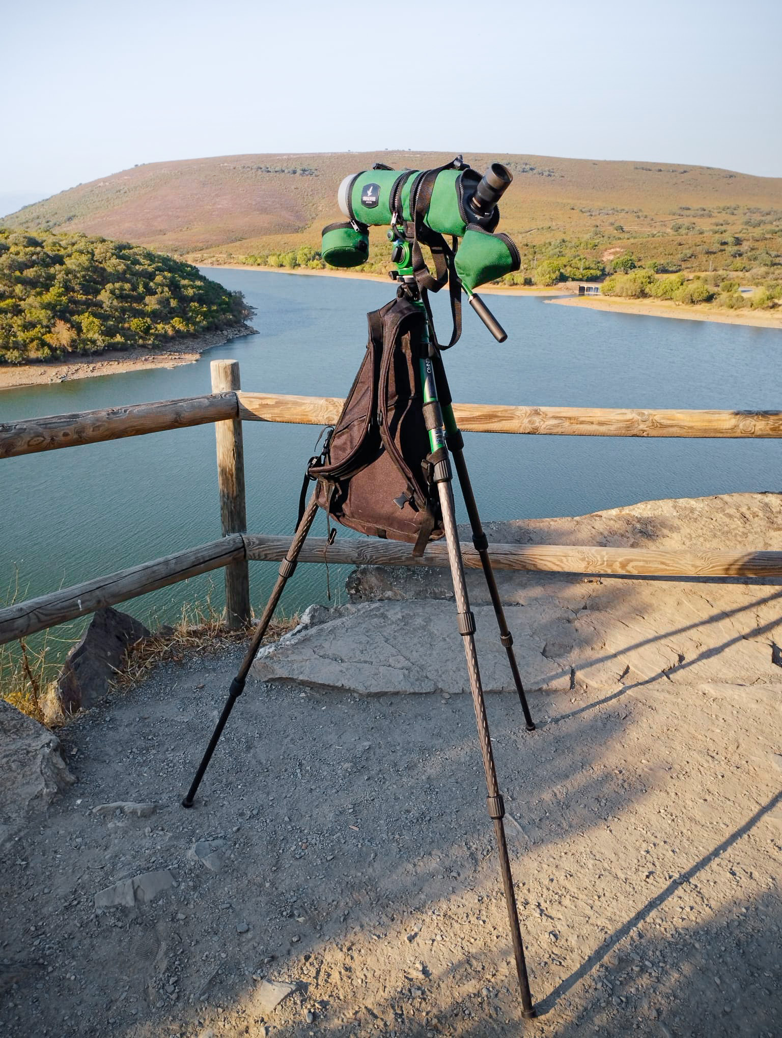 En cuestión de segundos tenía el monopié preparado a la altura que necesitaba gracias a su cierre de rosca, y con la rótula, que es especial para monopié y solo tiene movimiento vertical, podía encarar el telescopio para encontrar el pájaro y enfocarlo muy rápidamente.