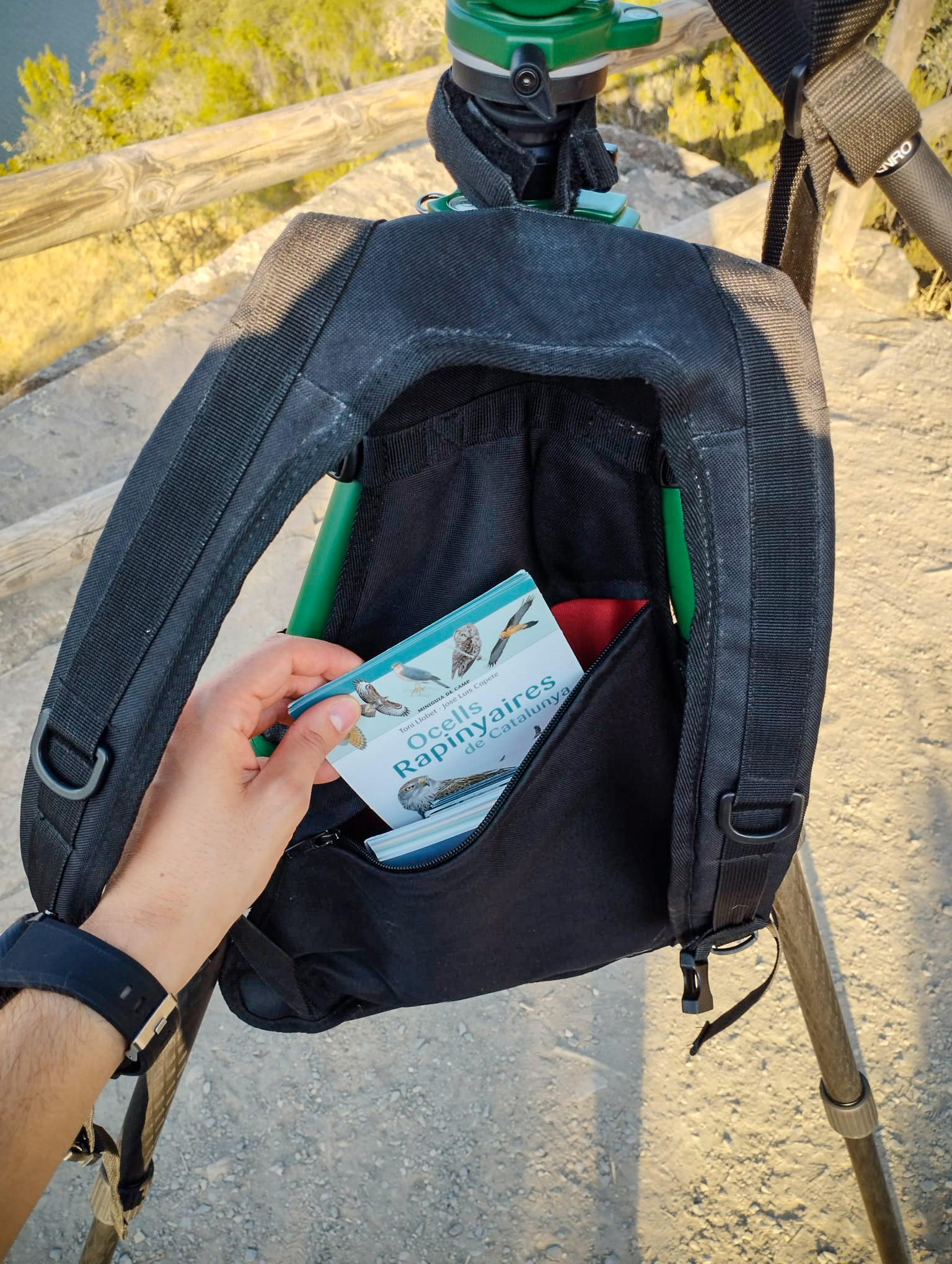 Además, la bolsa tiene dos compartimentos donde puedes llevar las guías, agua, comida, algo de abrigo y un pequeño botiquín. Esta semana he estado en el Parque Nacional de Monfragüe y la mochila SCOPAC LITE me ha permitido echar mano rápida de los prismáticos siempre que me ha hecho falta, así no he perdido tiempo dejando el trípode y el telescopio en el suelo mientras caminaba, lo cual me habría hecho perder de vista alguna que otra rapaz que volaba a larga distancia.