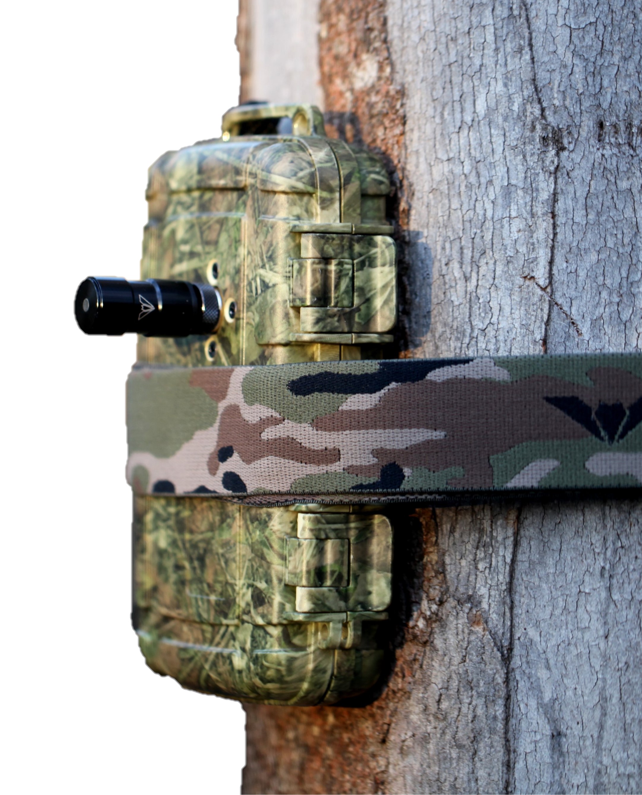Carcasa robusta de camuflaje: con múltiples puntos de montaje, desde bridas hasta soportes para trípode de cámara y correas elásticas. Si desea seguridad adicional, puede comprar la caja de seguridad y el accesorio de bloqueo de pitón.