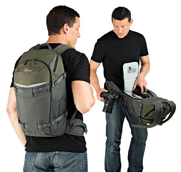 Algo especialmente atractivo de las mochilas LOWEPRO es la accesibilidad a los equipos, diseñada de tal forma que hasta es posible echar mano de la cámara sin necesidad de quitarse del todo la mochila.