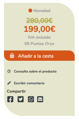 Con los nuevos puntos ORYX en cada compra a la web acumularás puntos ORYX que podrás transformar en descuentos en los siguientes pedidos que hagas.