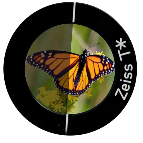 Para minimizar la reflexión y la refracción de la luz al atravesar los cristales, Zeiss está desarrollando constantemente su mítico tratamiento de las superficies de las lentes T* para conseguir que con cada tipo de cristal utilizado se minimicen ambos efectos y mejore tanto la transmisión como la corrección de la aberración cromática de sus prismáticos.