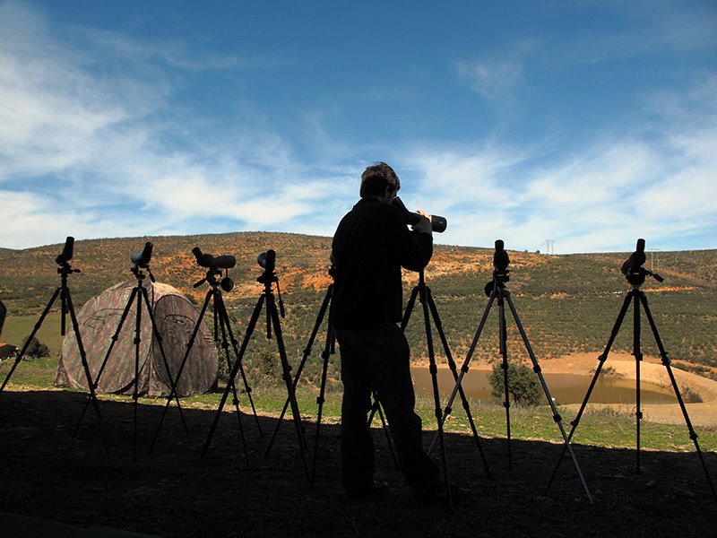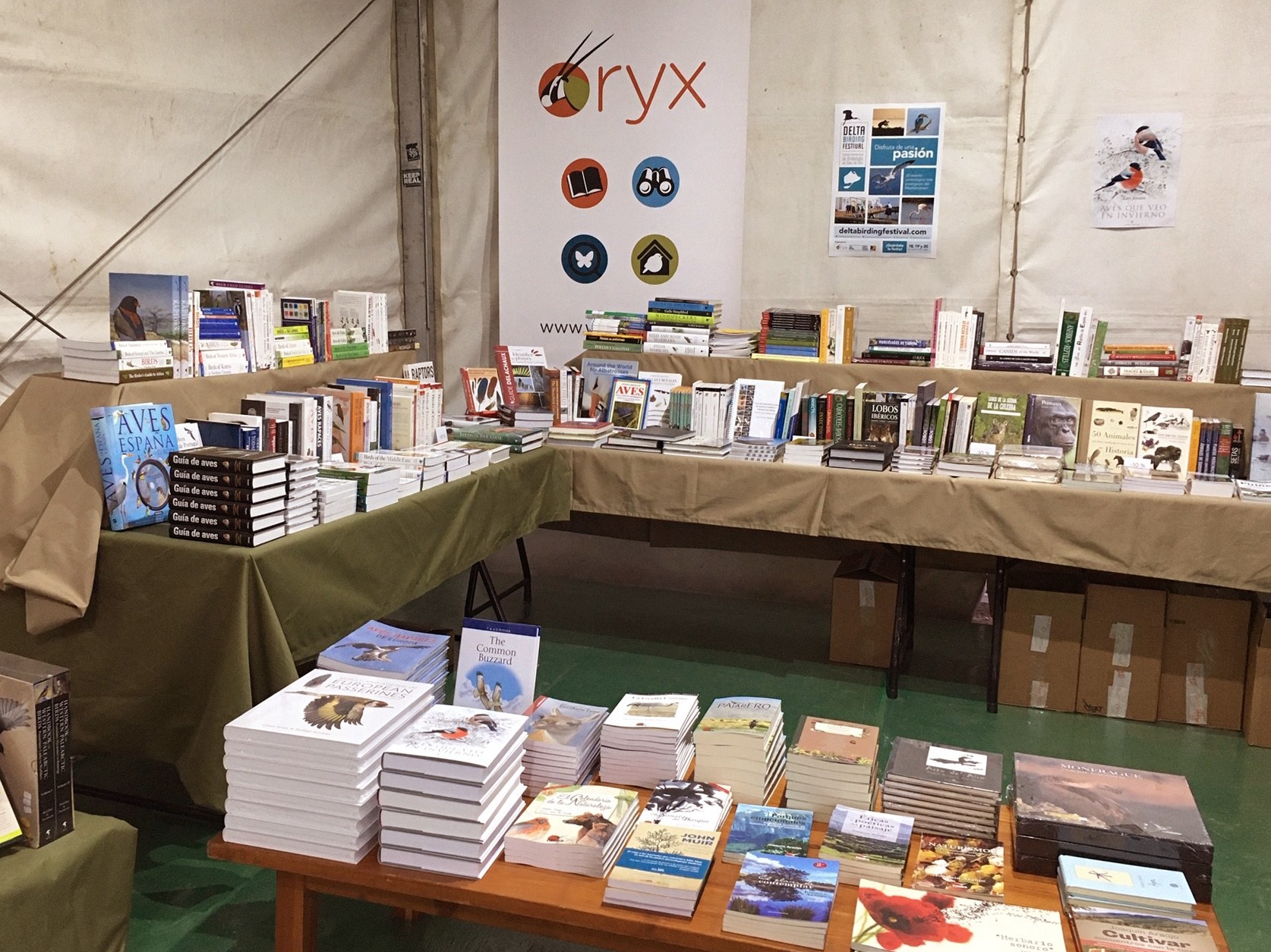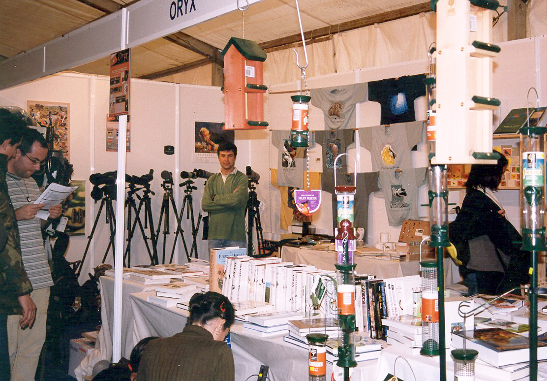 Ya desde entonces ideamos una estructura que se ha ido consolidando a lo largo de los años: una cuidadosa selección de óptica y equipamiento y una librería de historia natural con bibliografía de todo el mundo con clara vocación de ser el referente en nuestro país. Más tarde añadimos la sección de “La Naturaleza en tu Jardín”, con las cajas nido y los comederos. Eran muy populares en el norte de Europa, pero aquí solo teníamos noticia a través de revistas y sobre todo las veíamos en la cita obligada de cada año en la BirdFair de Inglaterra, acontecimiento de indiscutible relevancia en nuestro aprendizaje y dónde hemos ido tejiendo grandes alianzas para el futuro de Oryx.